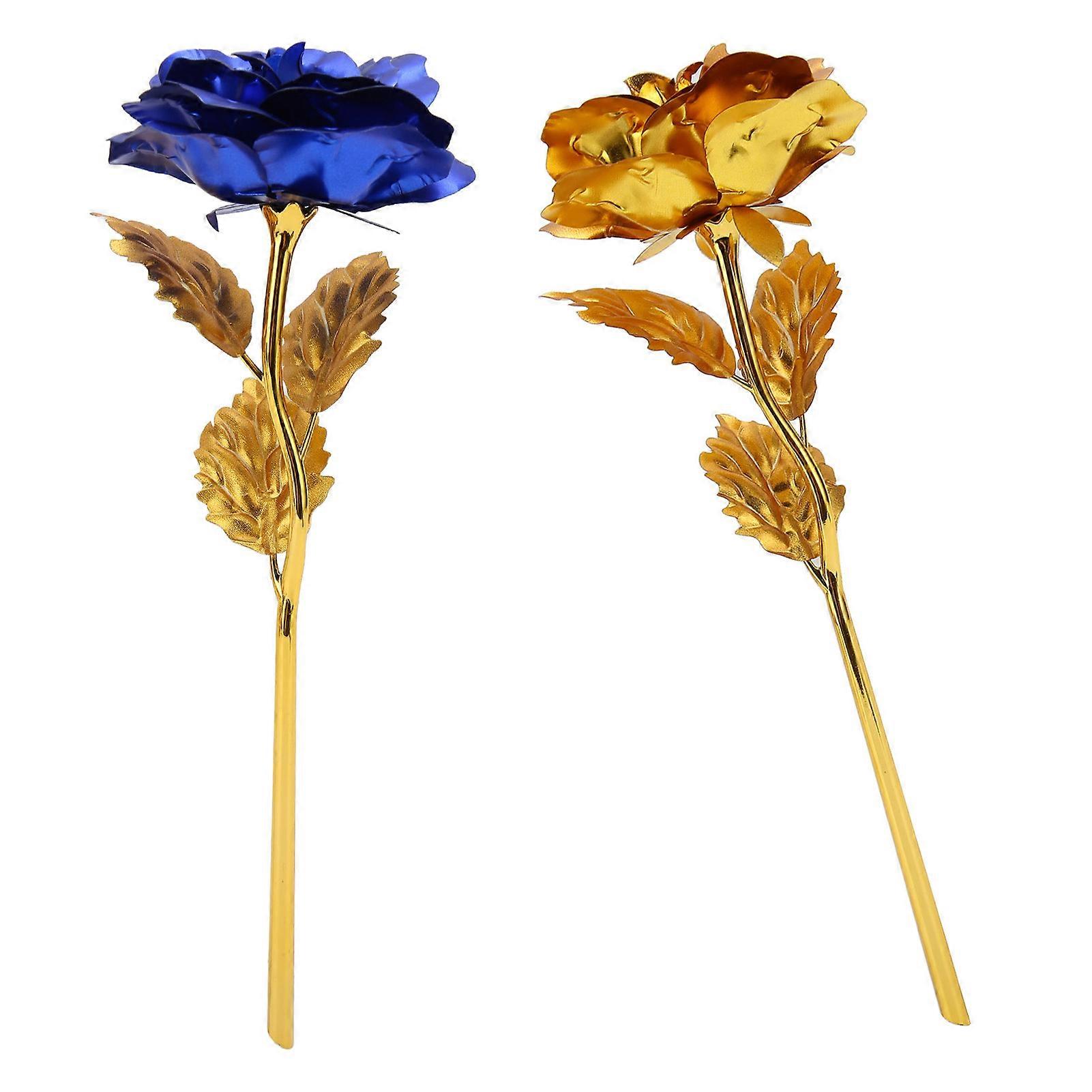 2pcs 24K Golden Rose Gold Plating Artificial Rose Flower with Gift Box for Mother Girlfriend