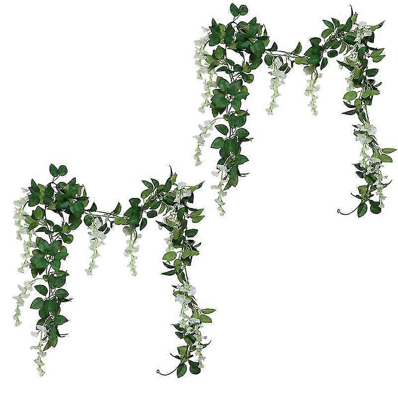 2pcs 2m Wisteria Artificial Vine - White Fake Silk Removable Wisteria Flowers And Leaves For Garden, Wedding Arch