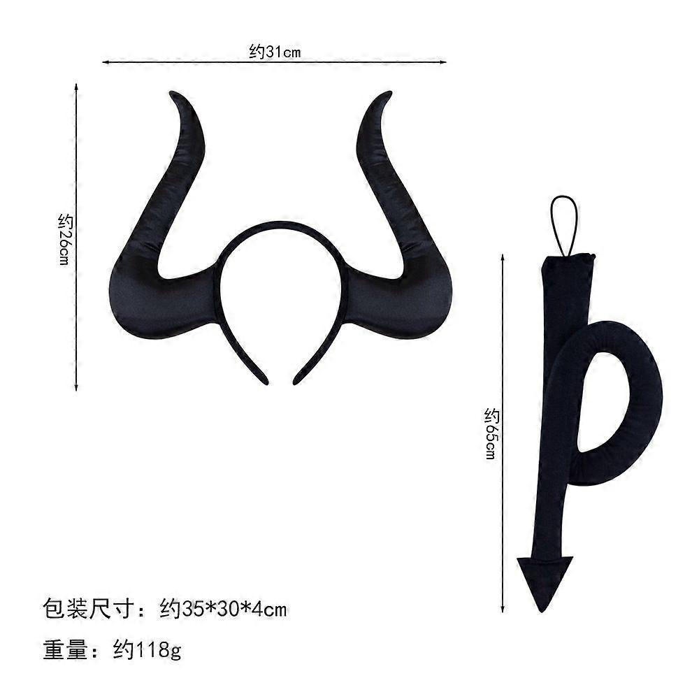 2pcs Devil Horn Headband and Tail Costume Set for Halloween Party Cosplay Suitable for Adults and Kids Easy to Wear and Durable