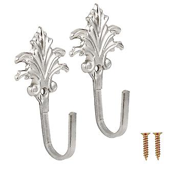2Pcs Vintage Maple leaves Curtain Tieback Tassel Hooks Door Wall Hook Silver