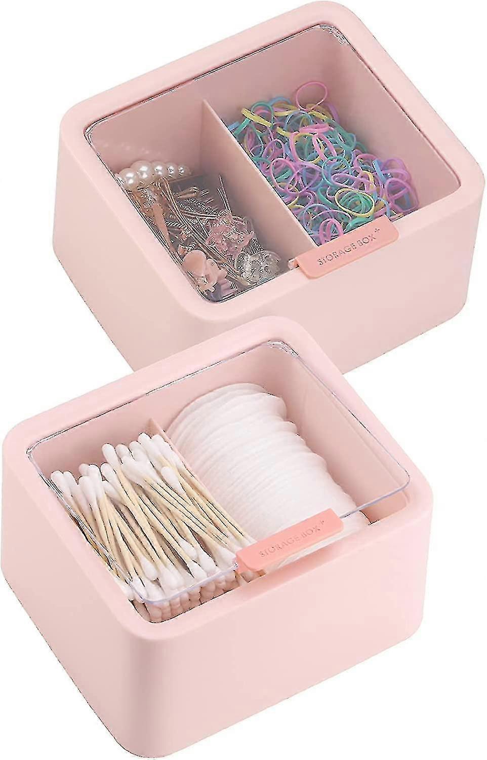 2 Slot Cotton Swab Ball Qtip Holder Jar Plastic Container Dispenser Box With Hinged Lid, Pink