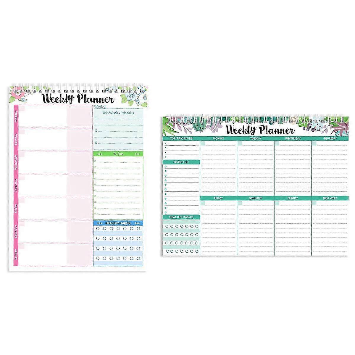 2 Weekly Planner Notepad, Planning Pad with Daily Schedule, Undated Weekly To Do List Notepad PCS