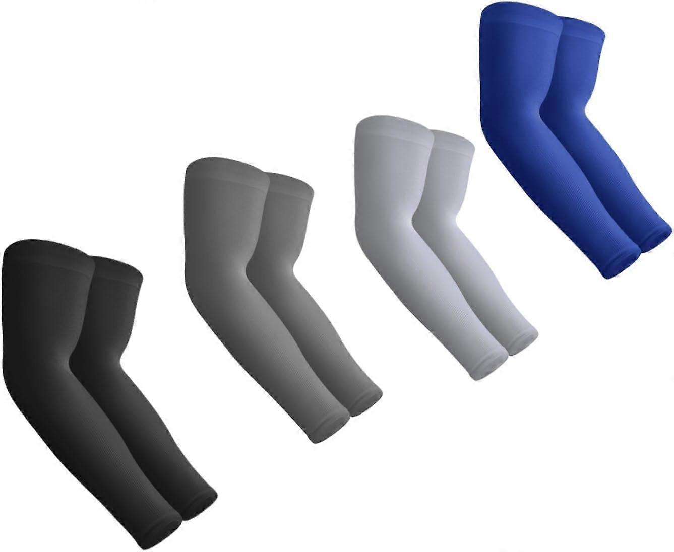 2 Pair Sun Protection Cooling Arm Sleeves Compression - Tattoo Cover up - Sun Sleeves for Men Women Youth 4 Pairs - Black & Lig