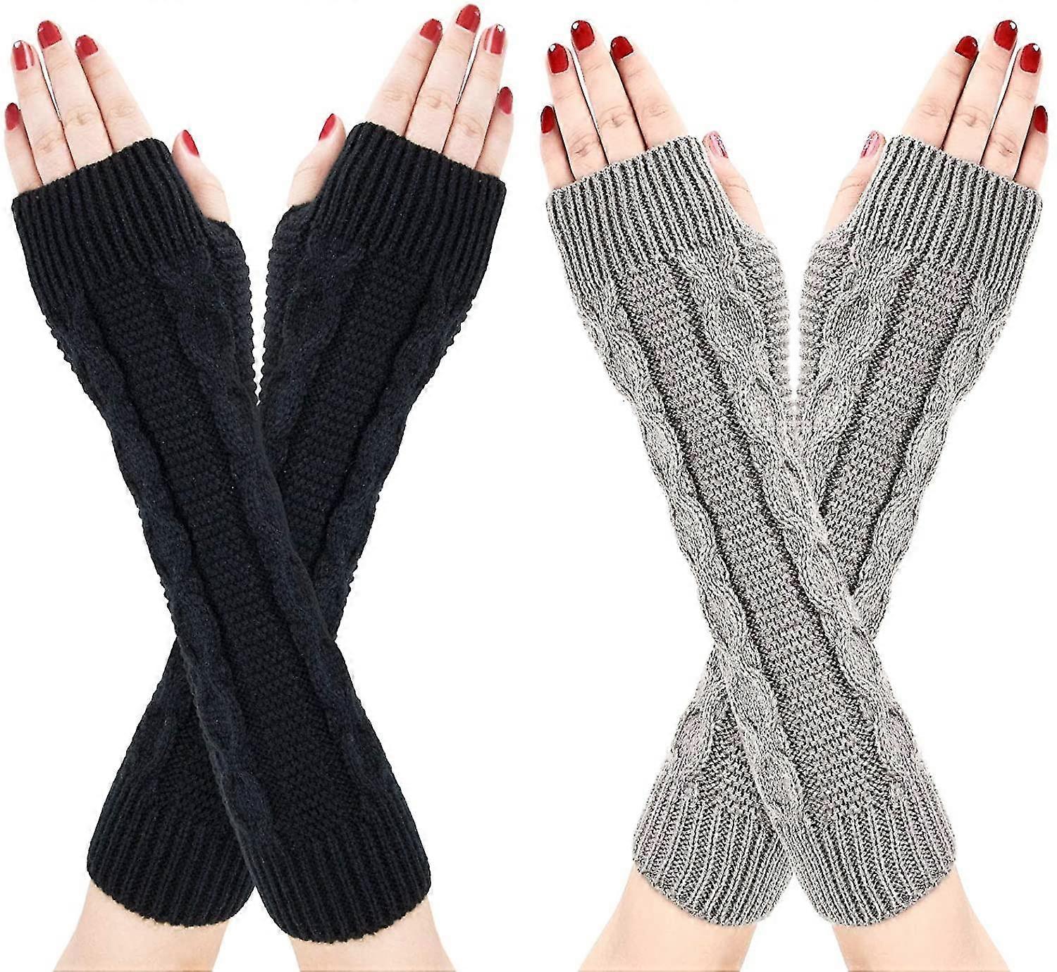 2 Pairs Women Fingerless Gloves, Winter Warm Gloves For Ladies Girls