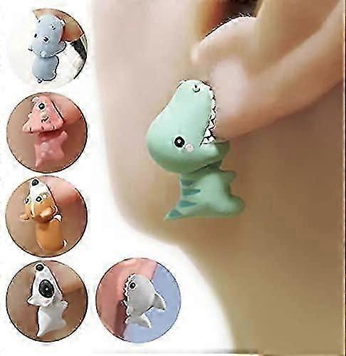 2 Pairs Animal Cartoon Stud Earring For Women Cute Dinosaur Little Dog Whale Clay Bite Ear Jewelry Funny Gifts Fashion Accessoriesy fg2025031700129