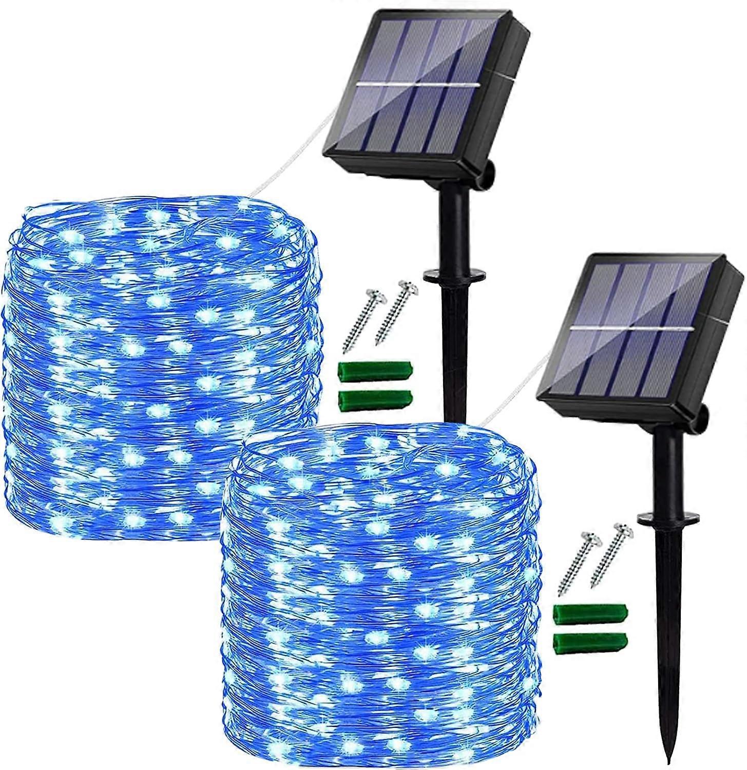2-solar copper wire lamp-new 8 functions 12 meters 100 lights [high quality] blue