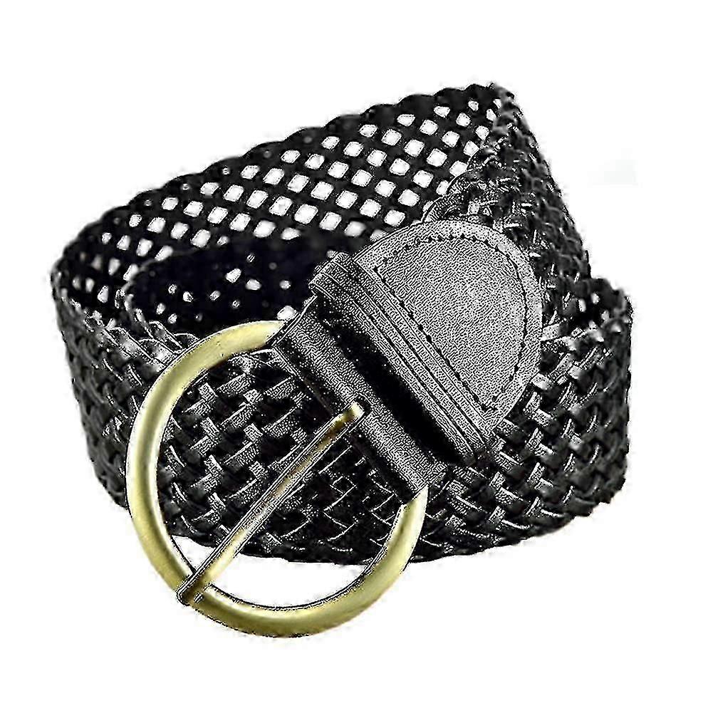 2 Inch Wide Leather Braided Belt For Women Hand Made Soft Woven Waistbands With Gold Round Pin Buckle