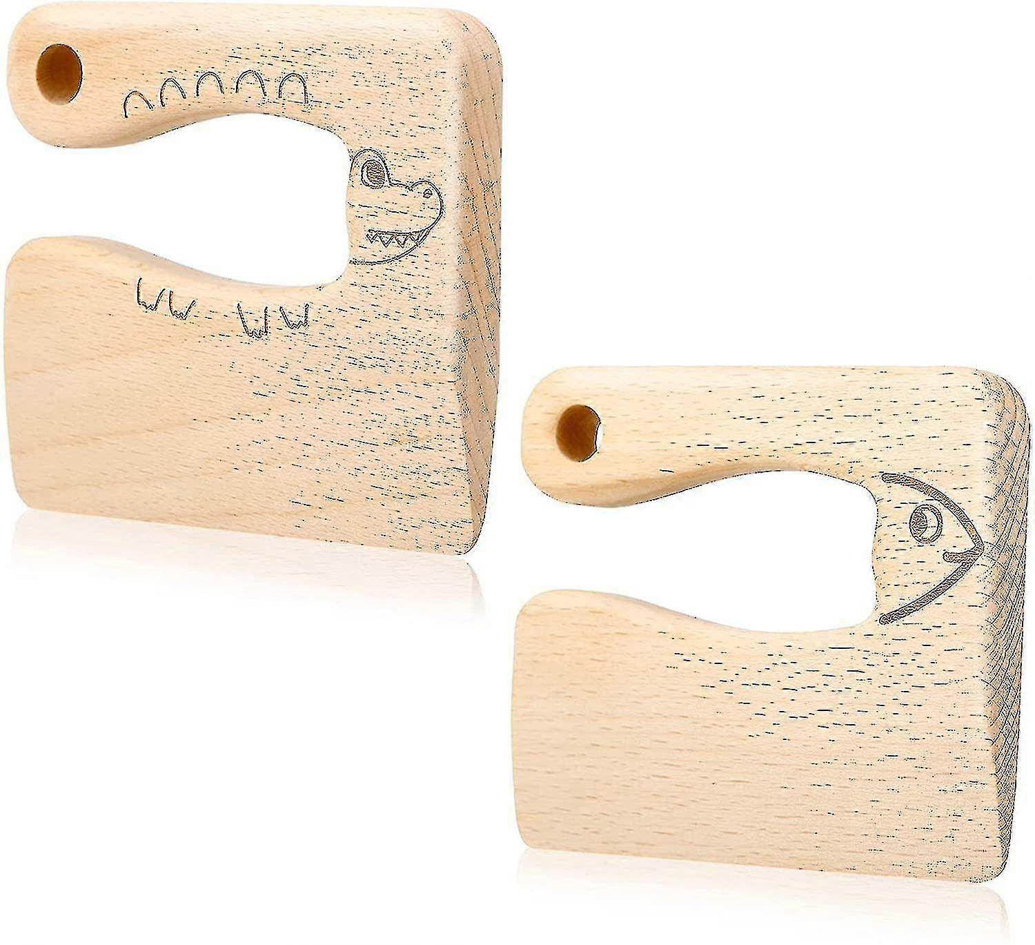 2 Pieces Wooden Kids Knife for Cooking, Safe Wooden Knives for Children to Cut Veggies and Fruits, Cute Fish and Crocodile Design