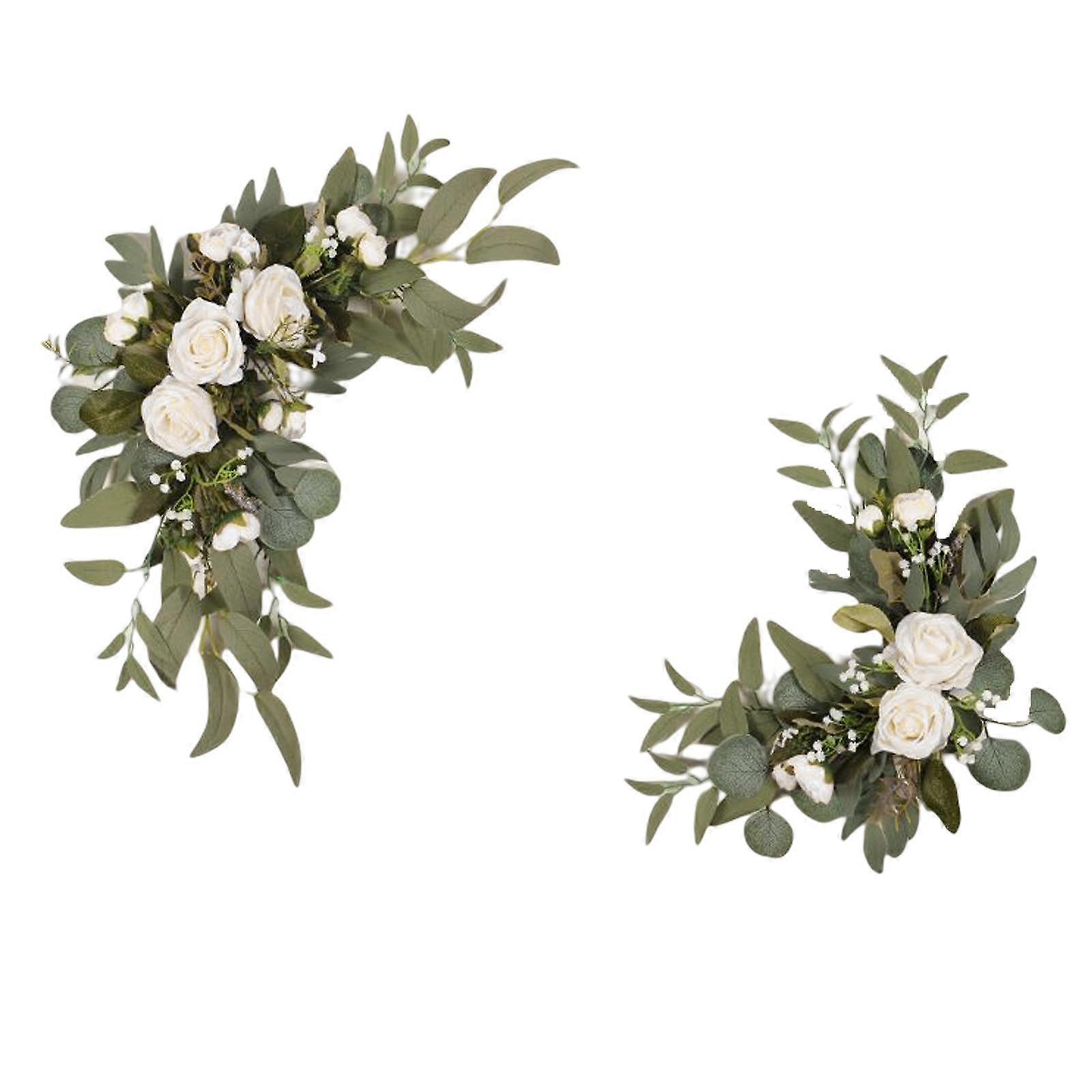 2 Pieces Artificial Flower Swag Green Leaves for Wedding Arbor Ornament white