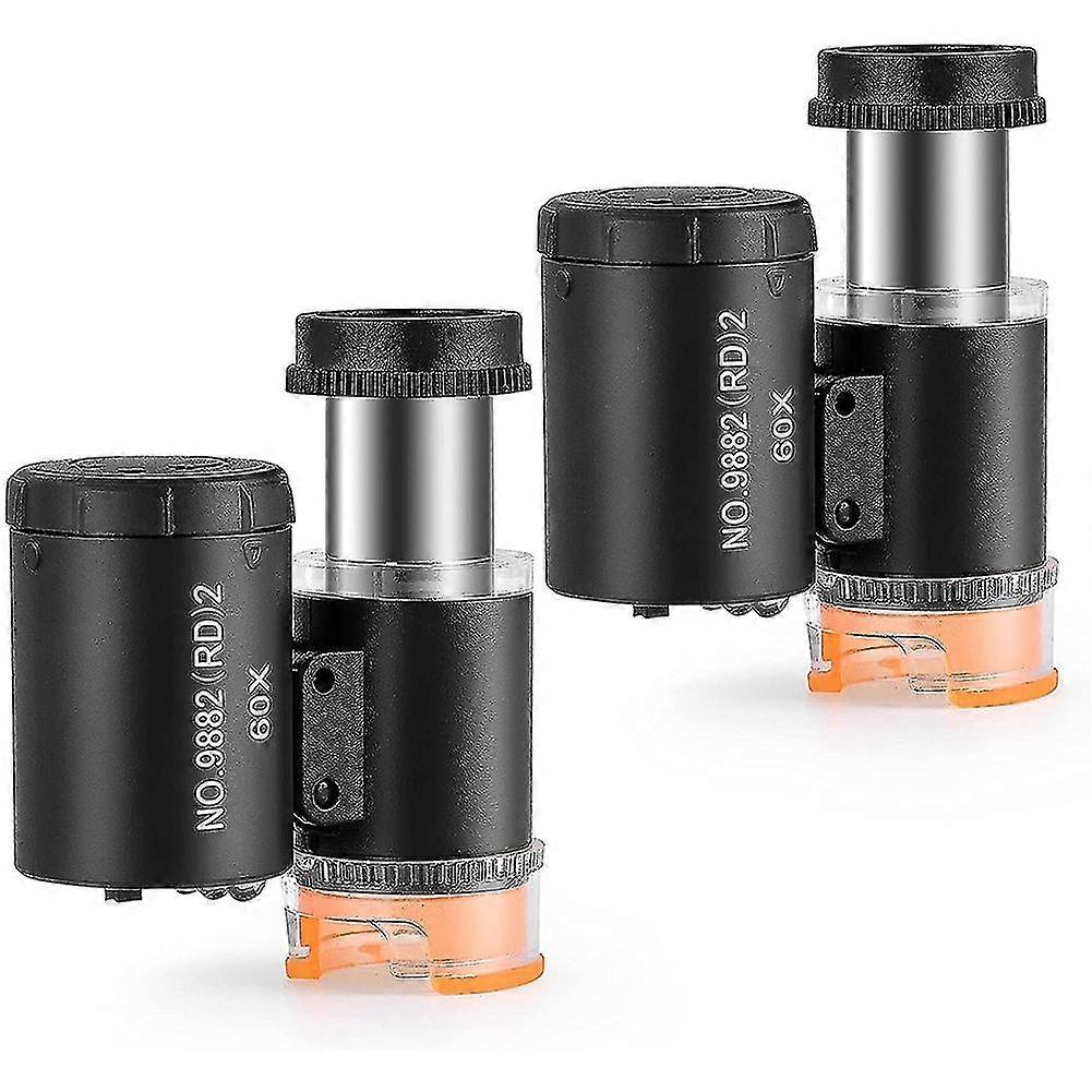 2 Pieces 60X Mini Pocket Microscope with 3 Light,Jewelers Eye Loupe Portable Magnifing Glass for Ha