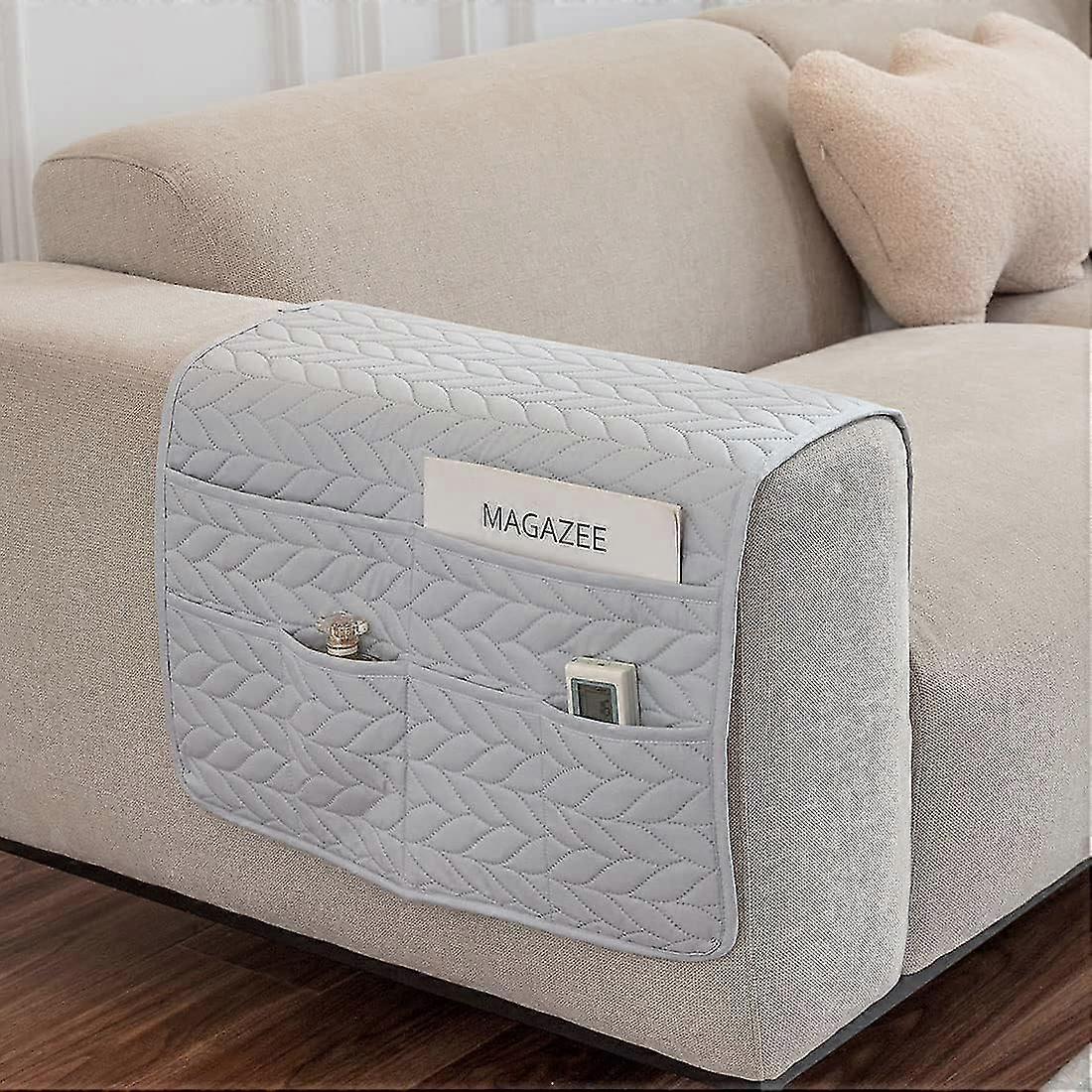 2-piece Waterproof Armrest Covers With 6 Pockets Anti-slip Furniture Protector Armrest Storage Organizer For Cell Phone Tv Remote Control Magazines, L