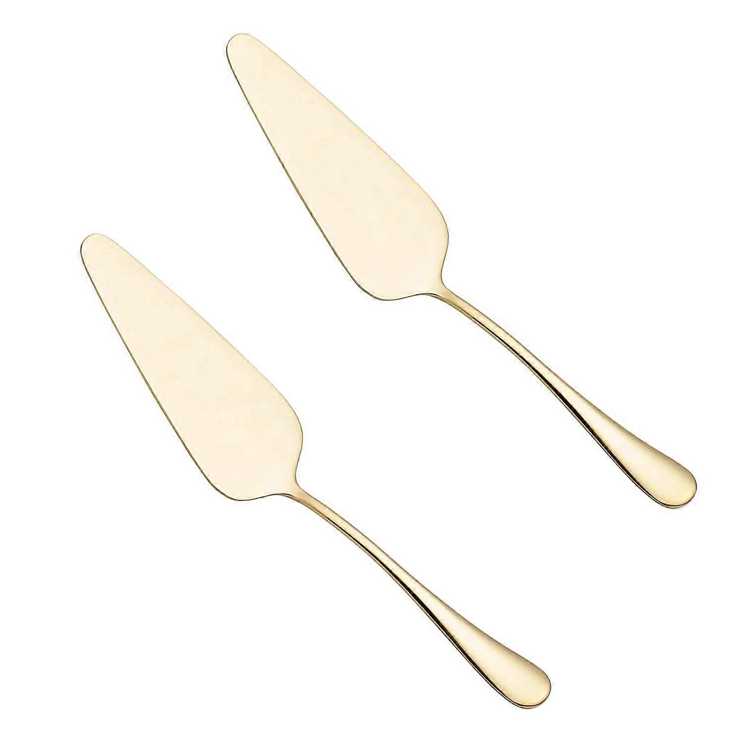 2 Piece Pie Server 9-inch Stainless Steel Table Flatware Set Cake Server Cutter Pizza Spatula Slice Silverware Dishwasher Safe for Party (Gold)