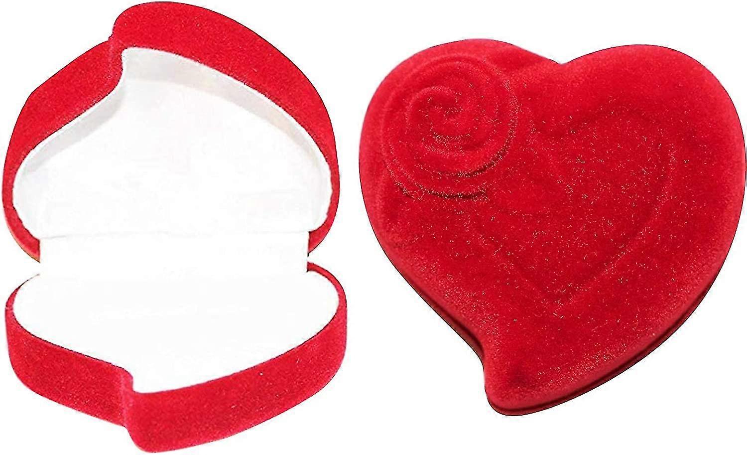 2 Pcs Crday Ring Gift Boxes, Heart Velvet Ring Box Single With Lids Cardboard Jewellery Boxes