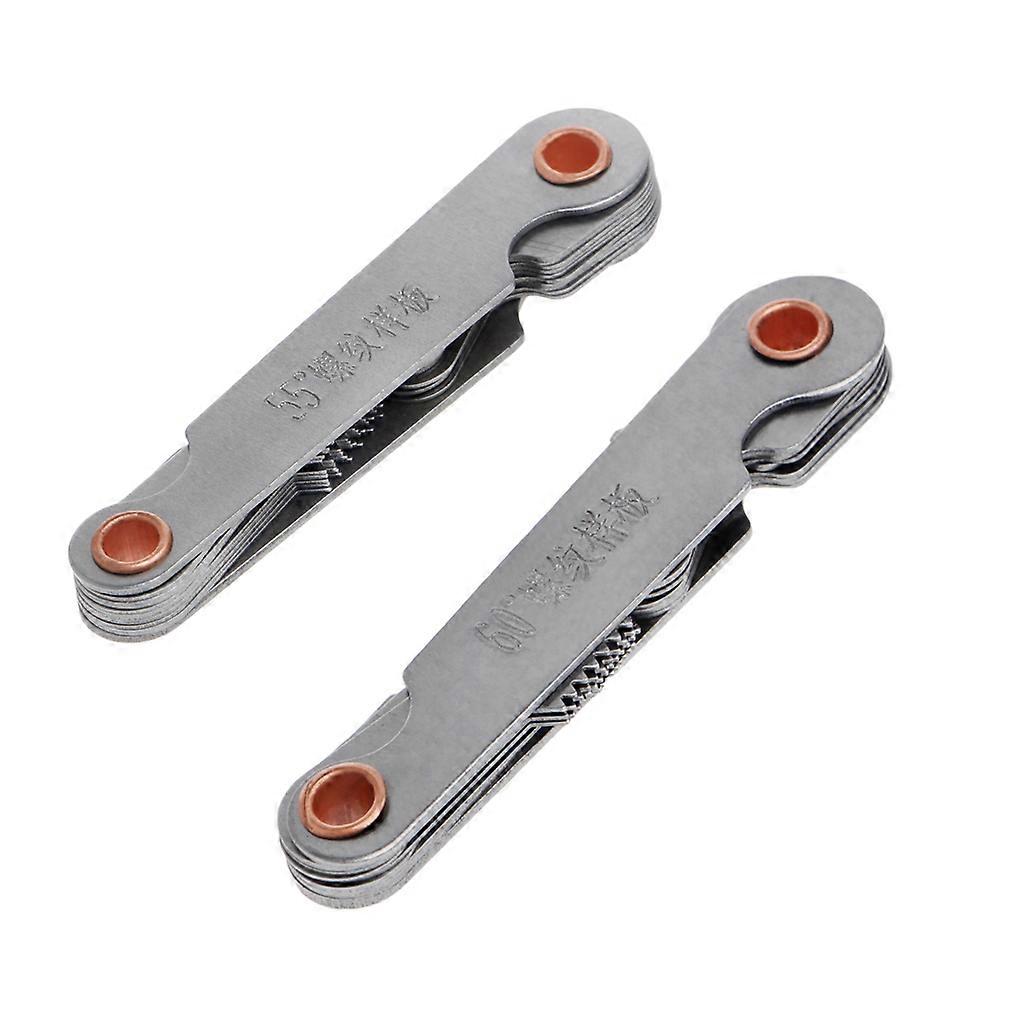2 Pcs Stainless Steel Metric Screw Pitch 60+55 Degree Thread Measuring Gauge Silver