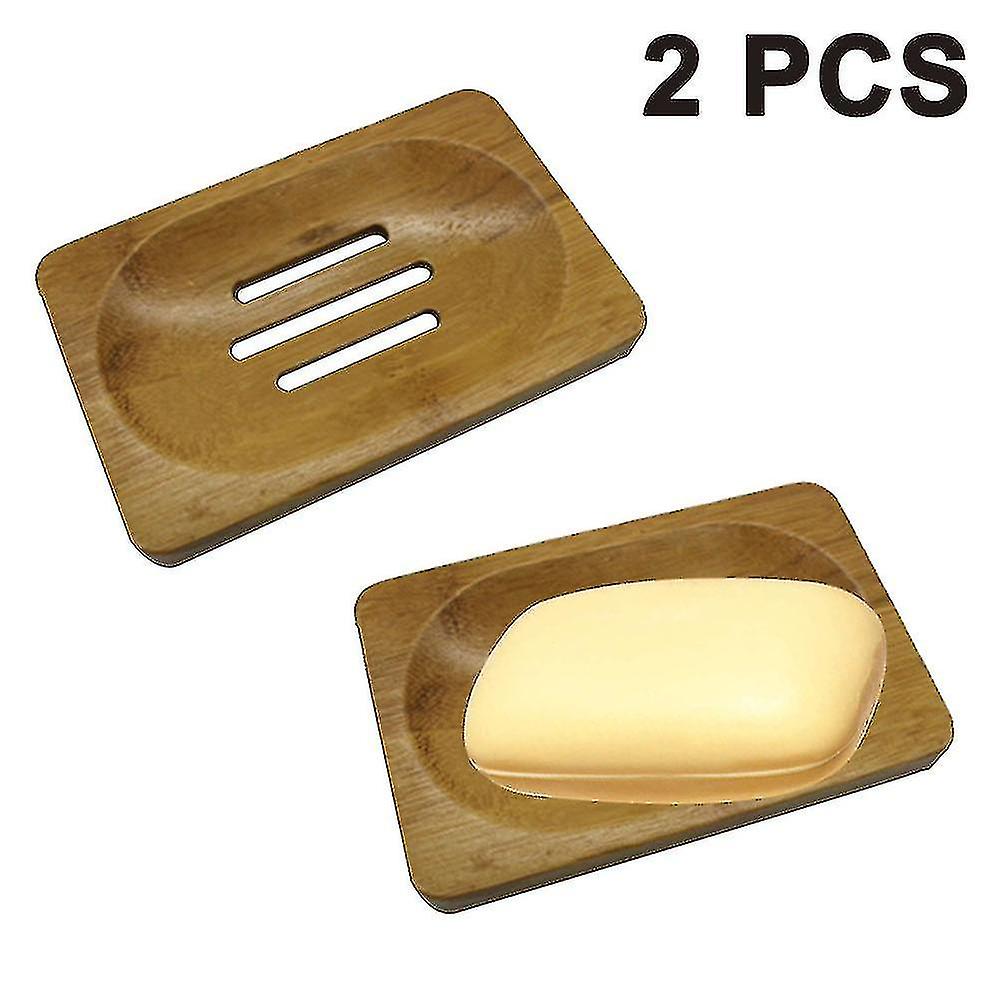 2 Pack Bamboo Wood Soap Dish, Bar Soap Holder For Shower Bathroom