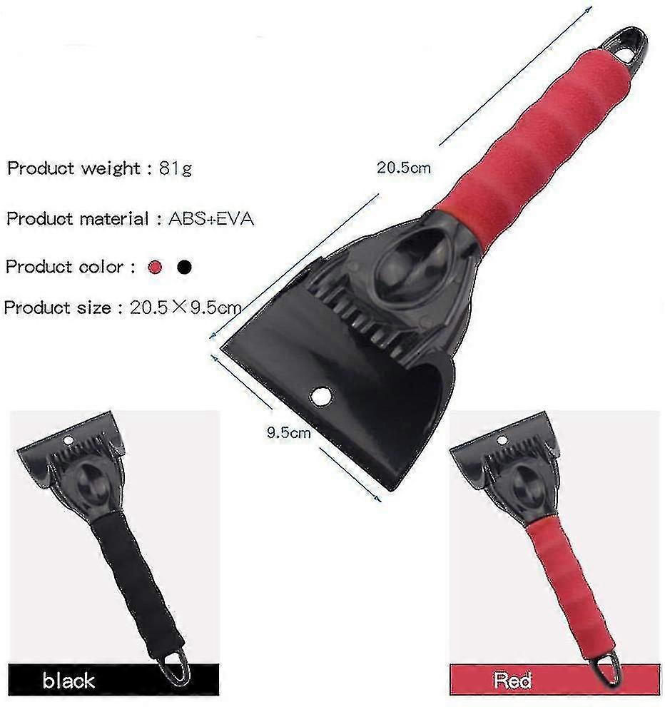 DURABLE PLASTIC AND FOAM GRIP - What you get is 2 High Quality car ice scrapers. Made of ABS high-strength plastic casting forming, hard and solid, low temperature performance, and 5 inch foam handle ensures a comfortable, secure hold. It's Lightweight but effective, 10.1inchPLASTIC SHARP BLADE - Can be used to cut through the thickest ice without scratching the glass or making a horrible screeching noise. The 3.8 inch wide blade can picks up all the ice and does have nice grip,remove frost easily and ice chunks.FOR -30F COLD SITUATION - Ice scraper consist of ABS plastic and has contoured foam grip enables a strong grip for you even wearing gloves.COMPACT ICE SCRAPER - Easy to stow or hang in a glove box, tool box, or trunk with ease. Best for pickup trucks, SUVs, a fire engine, and a auto.WIDELY USEDhe snow and frost on the car can be removed, but also can clean the electric car, bike and snow was covered by snow covered house, glass doors and windows.Produktbeschreibung EFFICIENT ICE SCRAPER: The scraper can clean ice and frost from cars Windshield A plow-like , thumb and fingers area structure to make ice-pushing movements efficient. WITH ICE-GOUGING TEETH: Broad, flat and extremely sturdy Remove snow and ice all in just one scoop without having to go back and forth on the same spot. Specification: Name: Snow Scraper Material: ABS+EVA Size: about 20.5 9.5cm/8.07*3.74in Packing List: 2*Snow Scraper