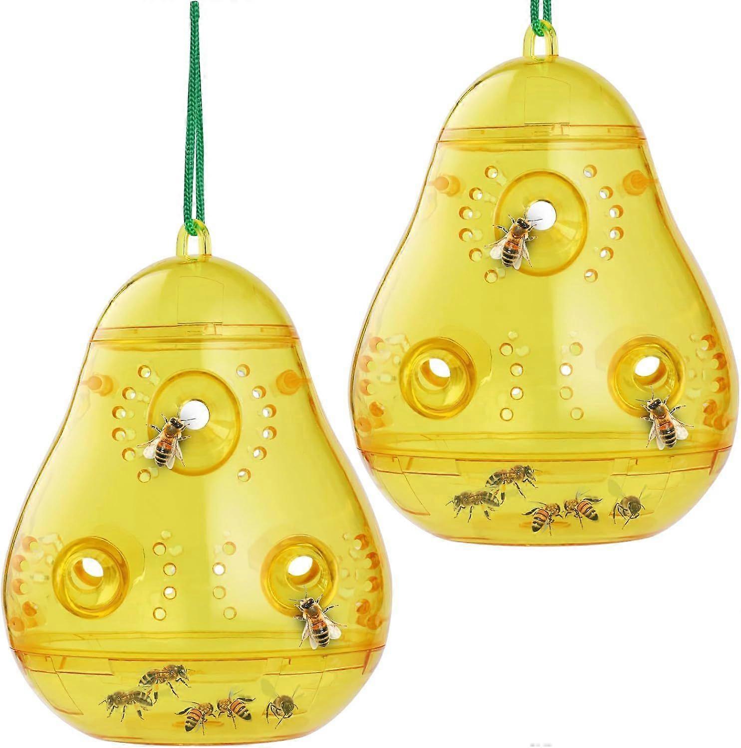 2 Pack Wasp Traps, Outdoor Hanging Bee Trap Jacket Hornet Wasps, Reusable Hanging Yellow Bug Killer Insect Catcher for Garden for Flies and Bugs