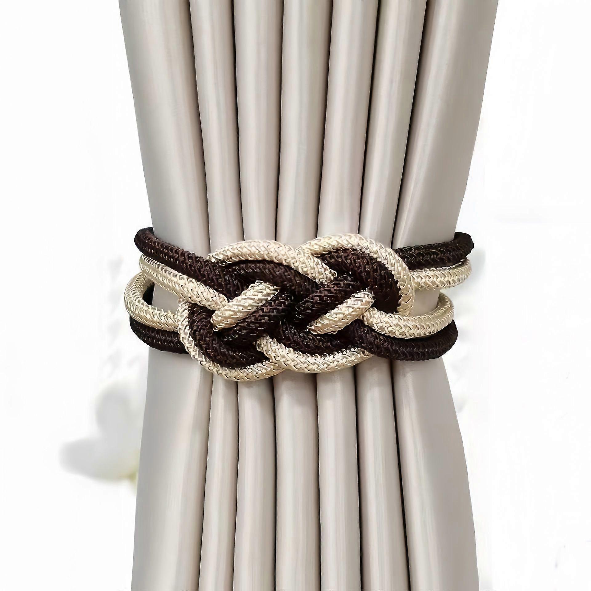 2 Pack Strong Magnetic Curtain Tiebacks Upgrade Nordic Simple Style Drape Tie Backs Double Color Weave Rope Knot Decorative Curtain Holdbacks for Home