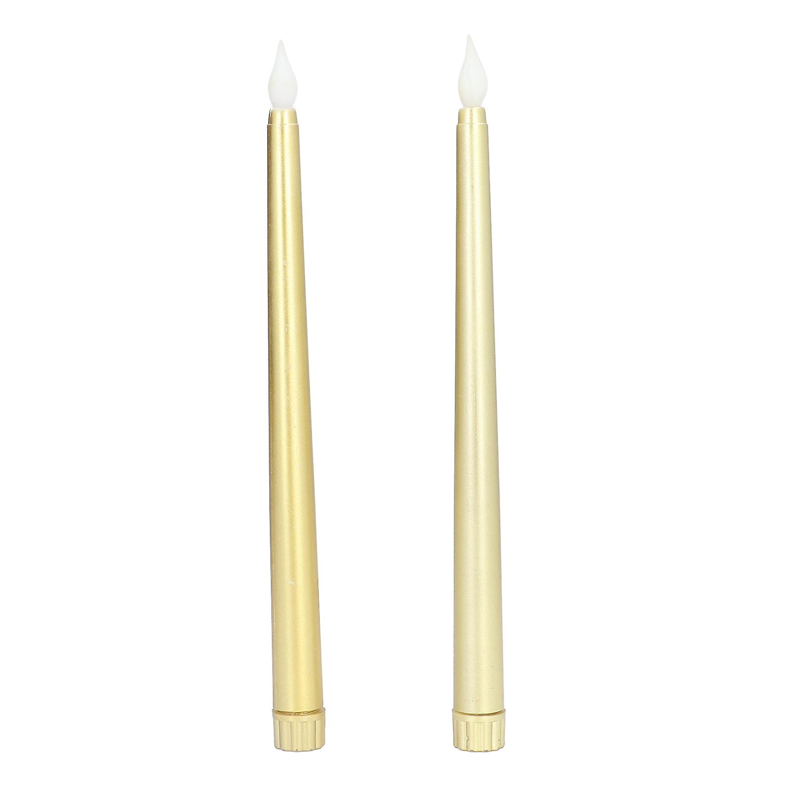 2 Pack Flameless LED Taper Candles Battery Powered for Festival Wedding Birthday Party Full Spray Gold