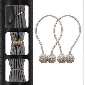 2 Pack Beige Magnetic Curtain Tiebacks 45cm Long Braided Buckle for Drapes