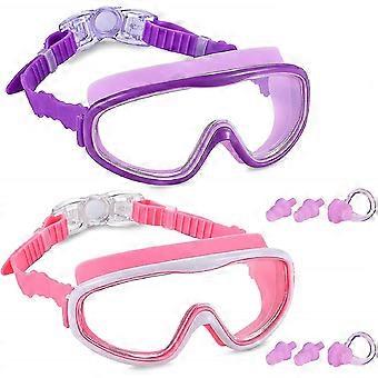 2 πακέτα παιδικά γυαλιά κολύμβησης, γυαλιά κολύμβησης για παιδιά και πρώιμους εφήβους από 3 έως 15 ετών, ευρεία όραση, αντι-ομίχλη