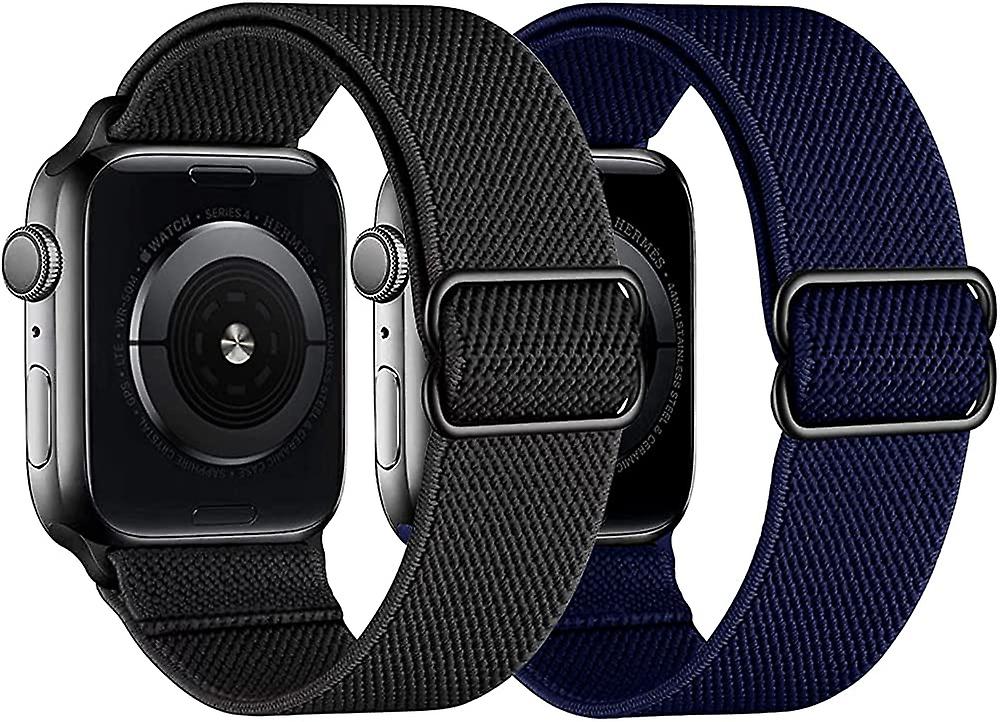 2 Pack Elastic Nylon Braided Watch Strap Compatible with Apple Watch 38mm 40mm 42mm 44mm Bands for Women Men , Sport Solo Loop Thin Wristbands for iPh