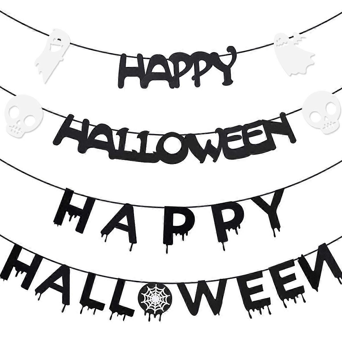 2 Sets Halloween letter pull flag outdoor flag home decoration non-woven fabric Halloween hanging decor household Halloween party hanging flags indoor