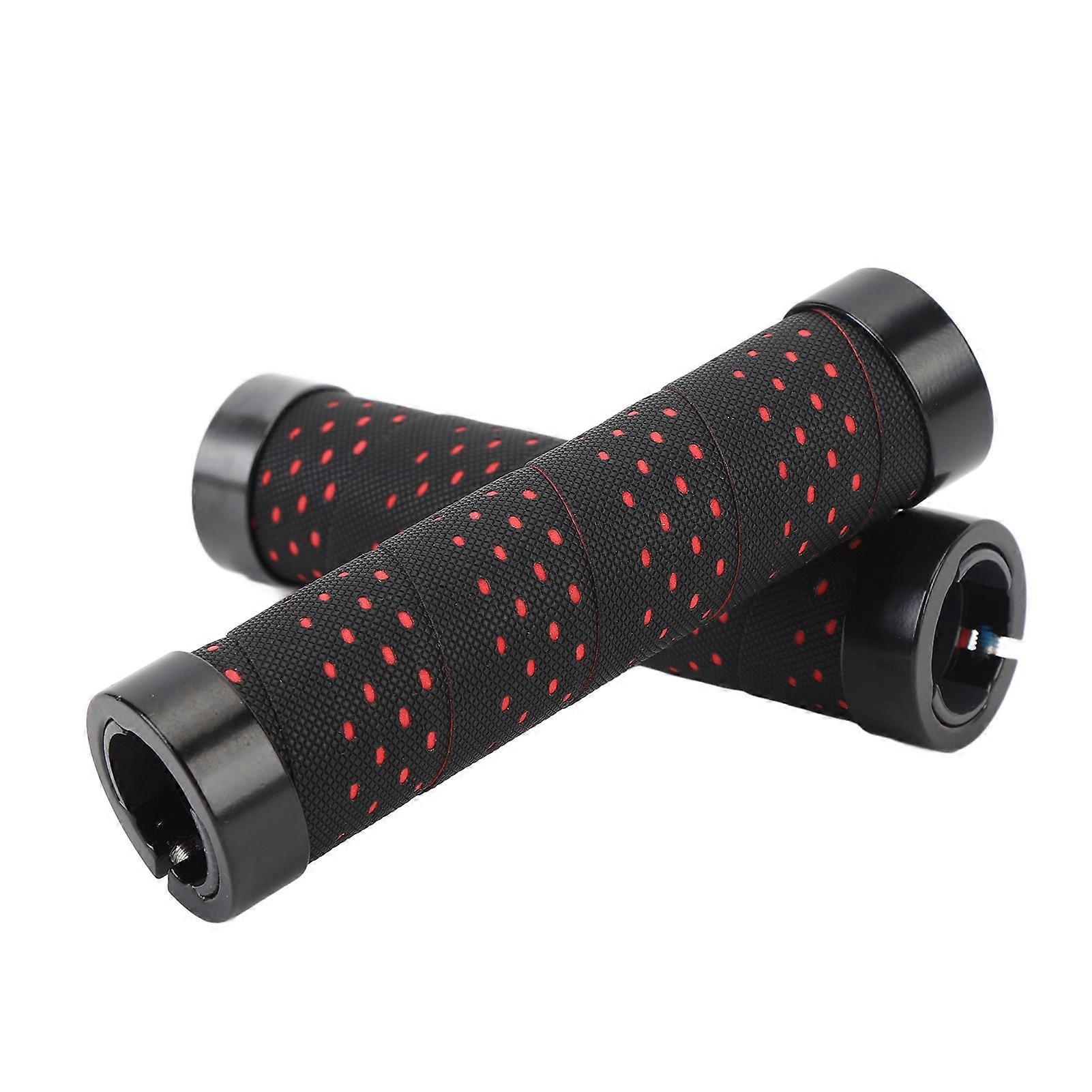 2 Set Cycle Handlebar Grip Set Anti Slip Dual Locking PU Comfortable Cycle Handle Grip Set 22.2mm Black with Red Base