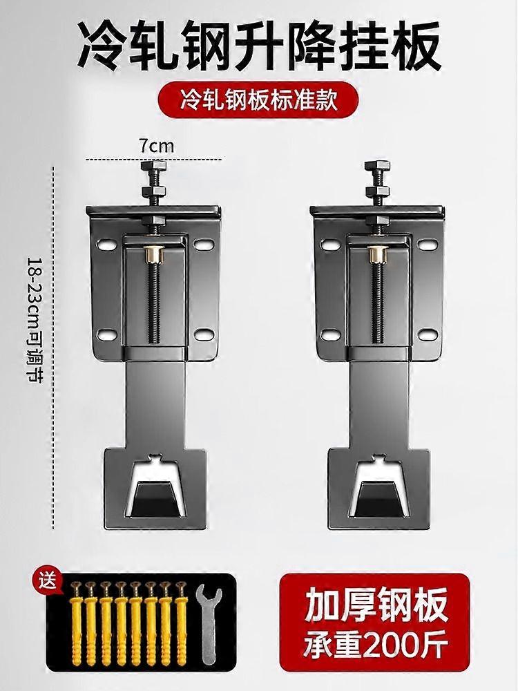 Description The adjustable cooker hood bracket is designed to provide a versatile and secure mounting solution for your kitchen range hood. Its sleek and durable construction ensures long-lasting performance, while the adjustable feature allows for easy adjustment to fit various hood sizes. Ideal for modern kitchens, it enhances both functionality and aesthetics. Features -Color:Black -Material:Steel -Size:17.00X6.00X2.20cm/6.68X2.36X0.86in -Size:8.30X7.30X2.30cm/3.26X2.87X0.90in -Adjustable design: the adjustable cooker hood bracket allows for easy installation and use, making it a versatile addition to any kitchen -Height adjustability: the range hood lifting bracket features a lift design, enabling you to adjust the height according to your needs -Durable material: made from durable materials, this range hood mount offers excellent loadbearing capacity for longlasting performance -Spacesaving: the compact design of the range hood support bracket ensures it does not take up valuable kitchen space -Universal compatibility: suitable for various models of range hoods, this adjustable exhaust hood bracket is a practical solution for any kitchenPackage list: 2 x Range hood hook 2 x long screws (diameter 7mm) 8 x yellow bolts 4 x nuts 8 x small screws (diameter 5mm) 1 x wrench