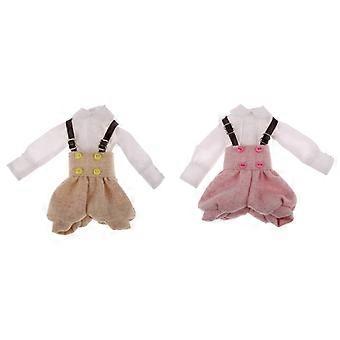 2 Sets Lovely Fashion White Shirt & Suspender Pants Outfit for 12'' Blythe Dolls Clothes Dress Up Accessories Kids Toy