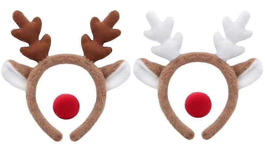 2 Sets Christmas Hair Accessories: Antler Headband And Reindeer Rudolph Nose Costume Set - Deer Antlers Headband Xmas Headpiece for Festival