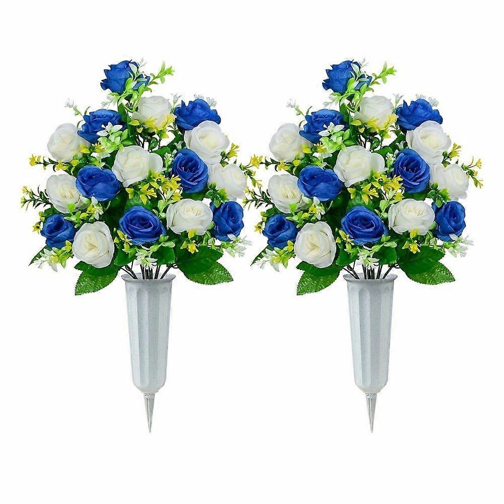 2 Sets of Artificial Cemetery Flowers, Outdoor Cemetery Decoration Roses, Memorial Flowers, Exquisite Flower Arrangement Bouquets with Cemetery Vase,