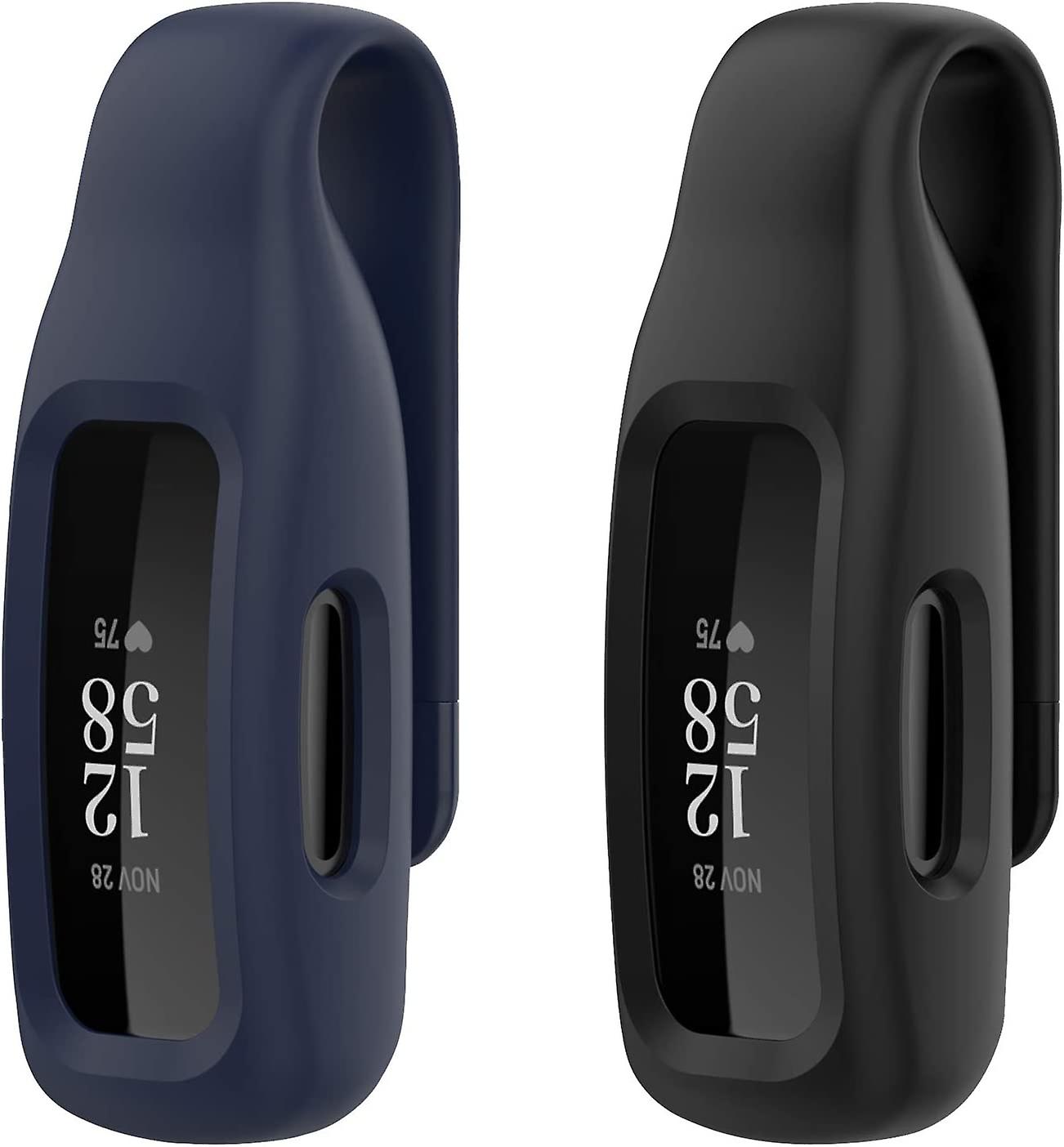 (2 Pack) Compatible for Fitbit Inspire 2 Clips with Steel Sheet, Solid Color Silicone Inspire Accessory Clip, Black, Navy