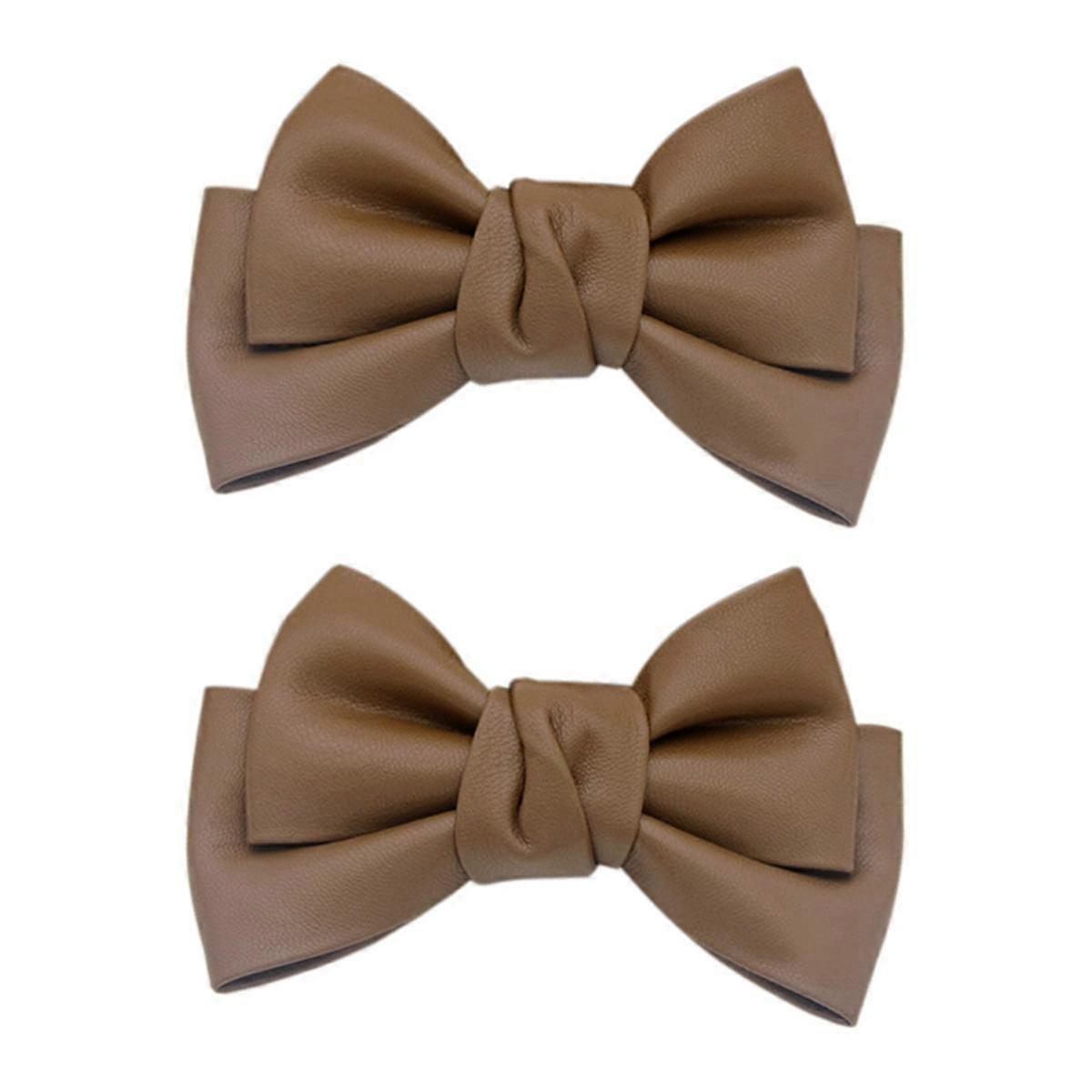 2Pcs Removable Shoe Clips Leather Bow Shoe Clips Shoe Jewelry Clips Wedding Party Shoe Buckle Coffee Color
