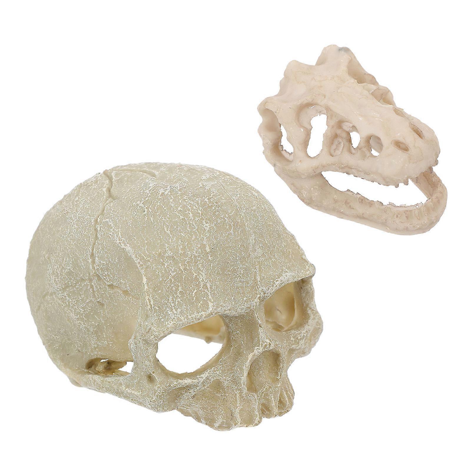 2 Pcs Skull Shape Resin Aquarium Decor Suitable For Fish Tank Landscaping 13x10cm Assorted Color Pet Fish Entertainment