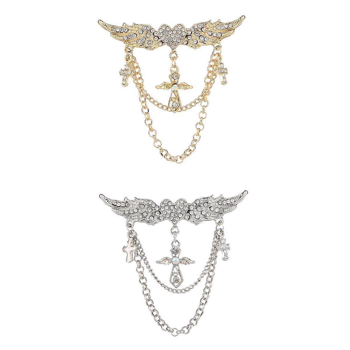 2 Pieces Classic Mens Suit Brooches Crystal Angel Wings Tassels Brooch Pins