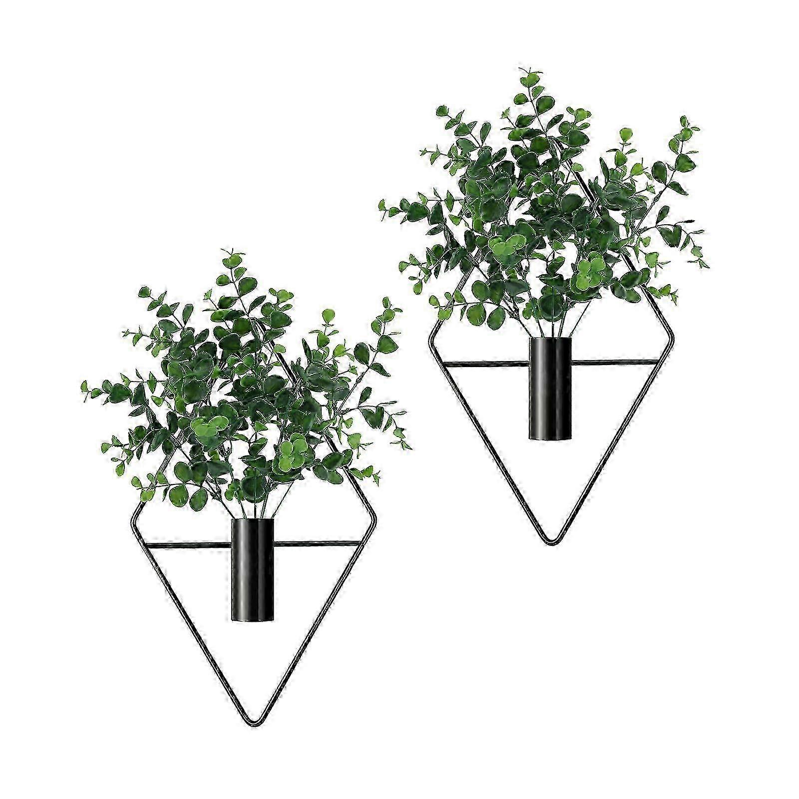 2 Pieces Diamond Shape Hanging Planters with Artificial Eucalyptus Plants Metal Vase Indoor Holder 2025