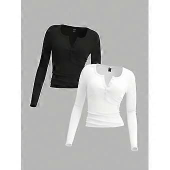 2pcs Black & Brown Knitted Cardigan Long Sleeve T-Shirt For Women, Suitable For Autumn/Winter