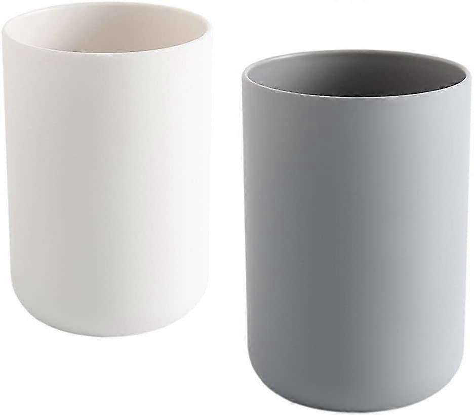 2 Piece Tooth Tumbler, Bathroom Toothbrush Holder, Plastic 300ml Cup (White and Grey)
