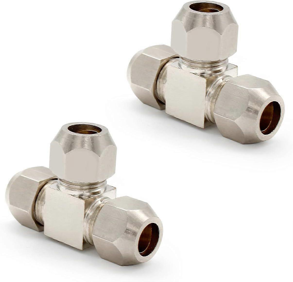 2 Pieces 8mm Compression Ferrule Tube, Equal Diameter Tee, Silver Color Ferrule Tube Fitting, Copper Nickel Plated Pneumatic Hose Fitting, Used for Ai
