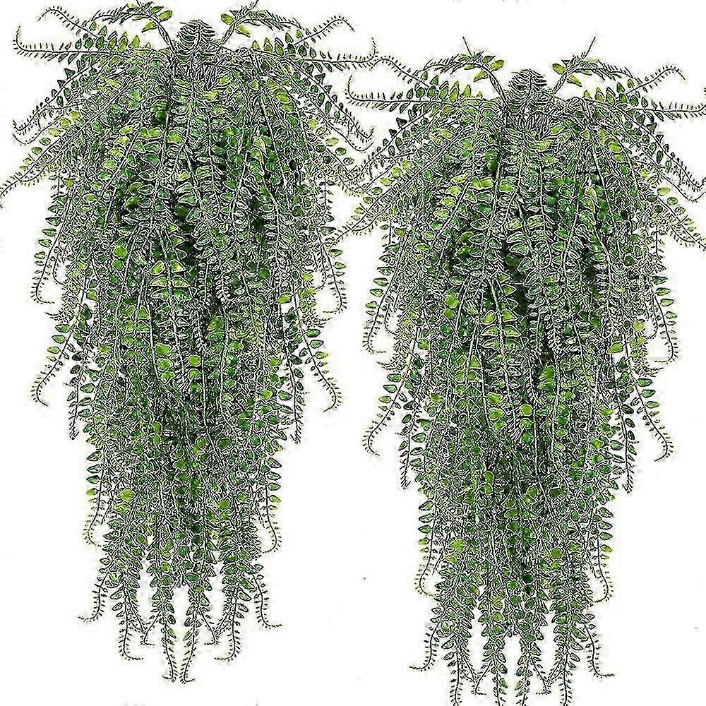 2 pcs Artificial Hanging Ferns Plants Vine Fake Ivy Boston Fern Hanging Plant Outdoor UV Resistant Plastic Plants (Green) 25-26