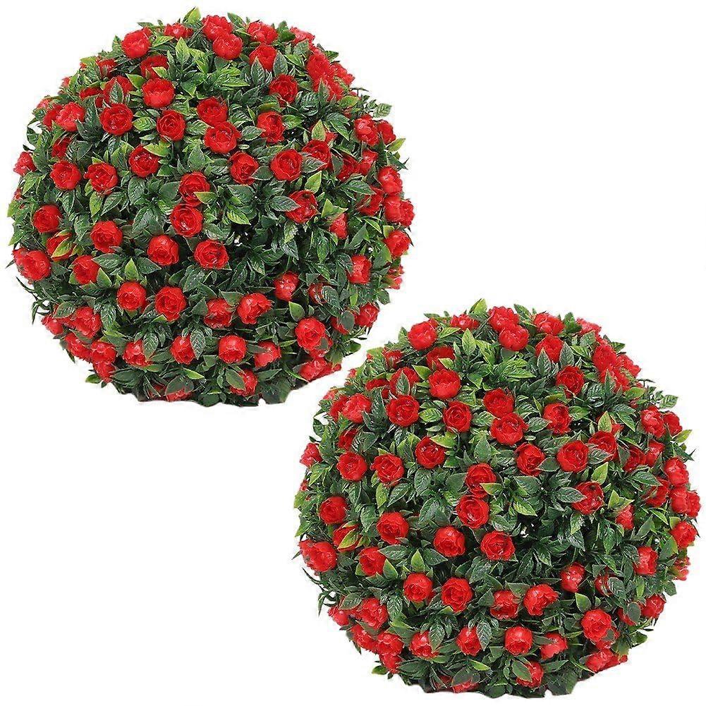 2 Pack Artificial Topiary Balls with Lifelike Red Flowers for Indoor Outdoor Garden Wedding Decor