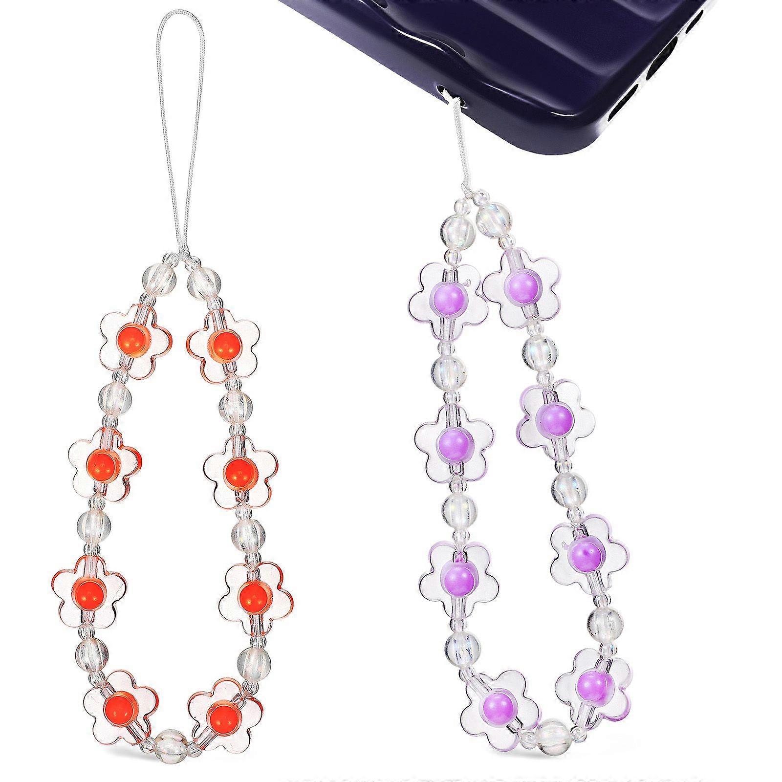 2 Pcs Phone Chains Flower Pendant Lanyards Bracelets Straps Phone Charms