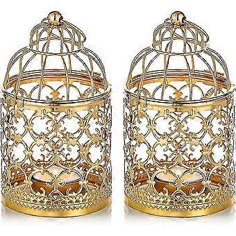 2 Pcs Small Metal Tealight Hanging Birdcage Lantern, Vintage Decorative Centerpieces - SNNGV