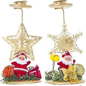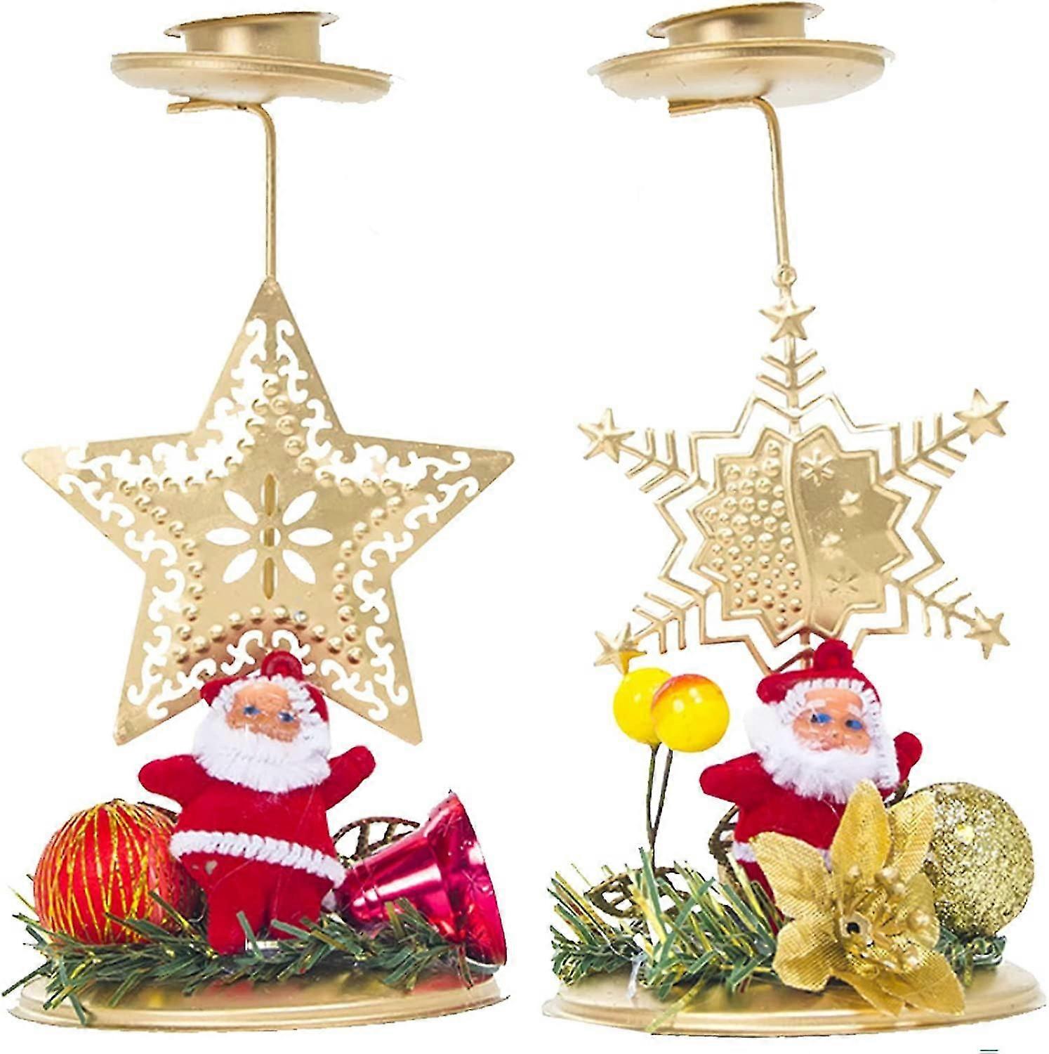 2 Pcs Christmas Snowflake Candle Holder Tree Candlestick Gold