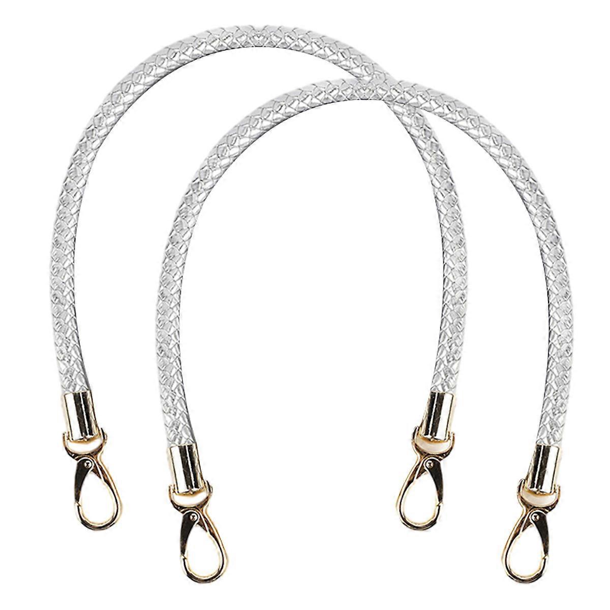 2 pcs 60cm Replacement Braided Purse Straps Leather Handbag Handles with Spring Buckle for DIY Bag Accessories
