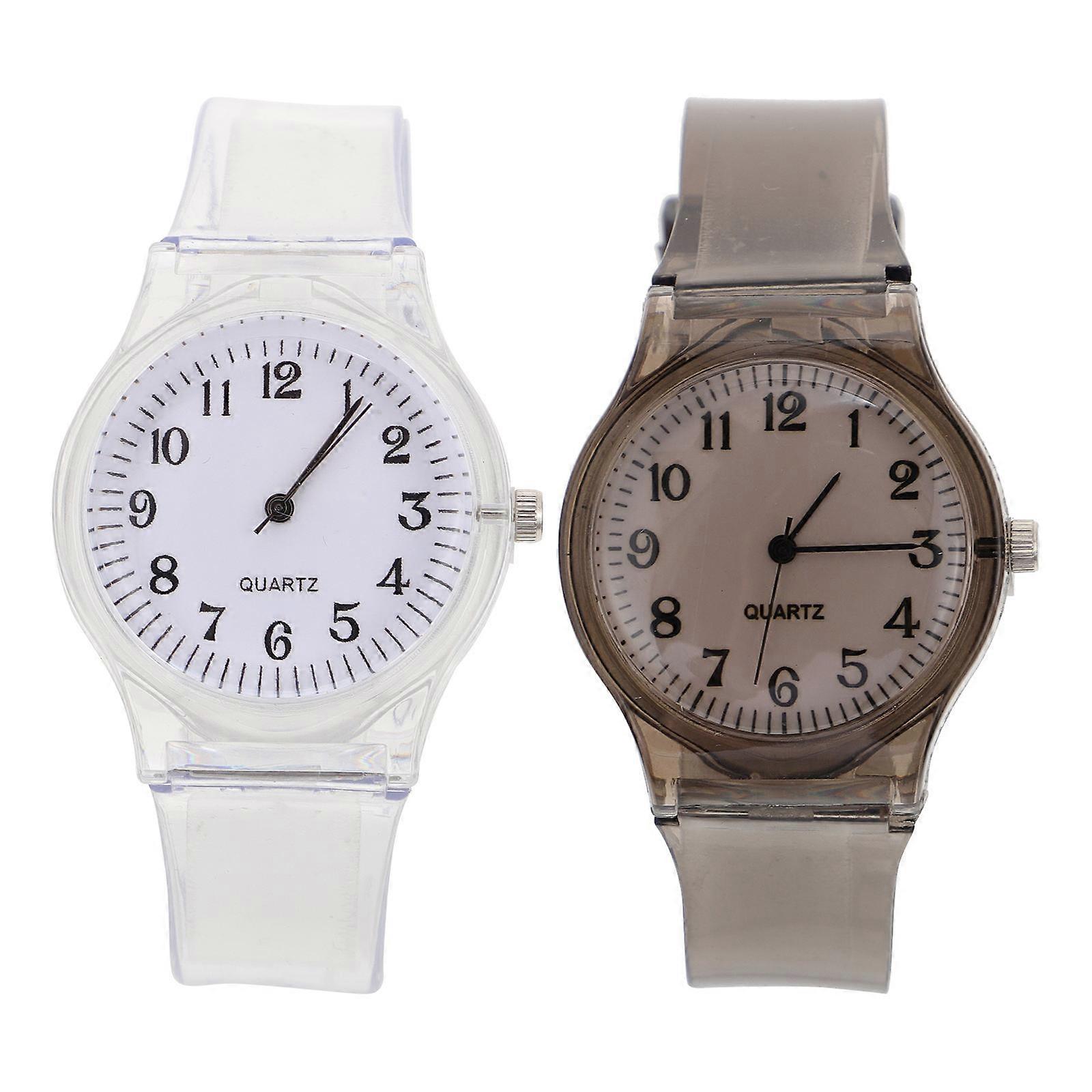 2 Pcs Durable Fashionable Plastic Watches for Kids with Clear Numbers, Skin Friendly Design for School and Outdoor Activities, Classic White & Black