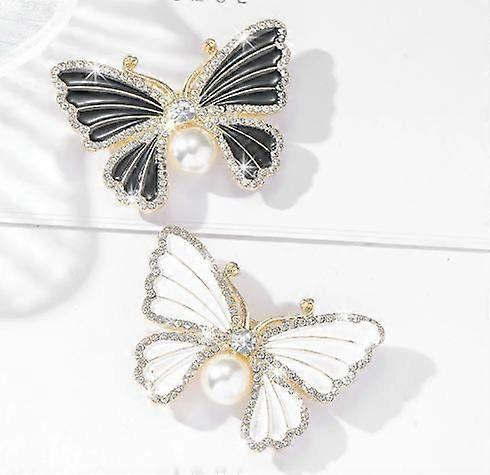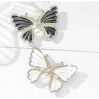 2pcs Butterfly Crystal Brooch Pin Women Rhinestone Bead Lapel Pins Shawl Clip Badge Hats Clothes Dress Accessories Jewelry For Daily Decoration