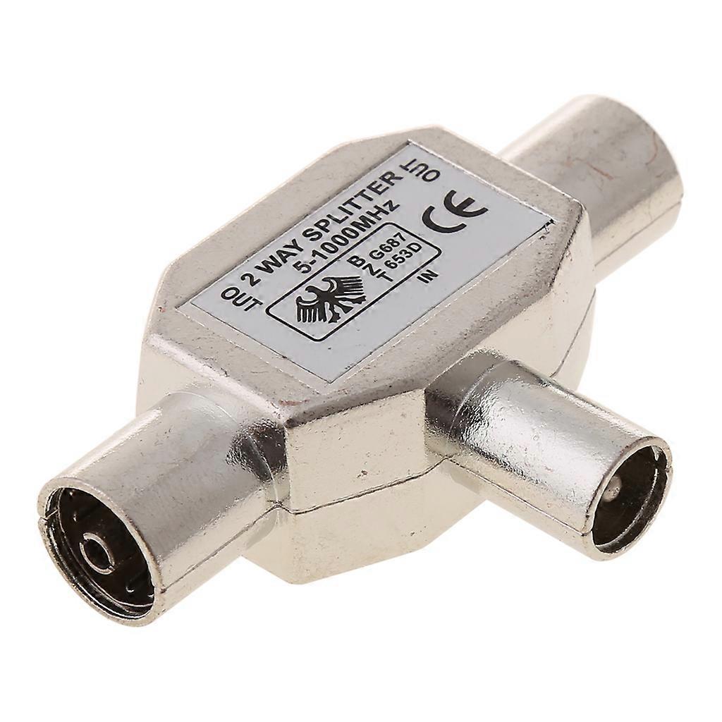 2 Way for T Splitter1x Male to 2 x Female Metal COAX Coaxial TV Aerial Adapter Silver