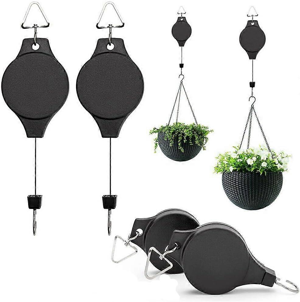 2 Pcs Plant Pulleys, Retractable Heavy Duty Easy Reach Pulleys Plant Hanging Basket Hooks For Garden Basket Planters And Bird Feeder